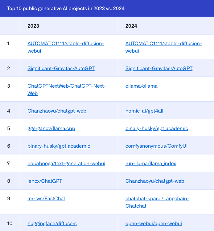 GitHub 上的开发者正在努力降低 AI 实验的门槛。排名前 10 的公共生成式 AI 项目致力于改善对 AI 模型的访问,从而使实验变得更容易。